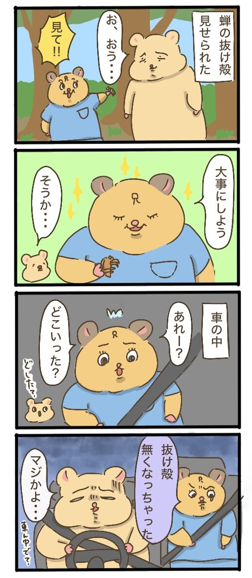 恐怖の予備 2025年08月05日 22:38 クズクズになった蝉の抜け殻が車の中にある(たぶん)ブログ村参加しております!ポチッとお願いします🙇にほんブログ村 「甥っ子」カテゴリの最新記事 タグ :#蝉の抜け殻 < 前の記事次の記事 > コメント コメント一覧 (2) 1. えむえふ 2025年08月06日 08:07 ちょっとした真夏のホラー回でしたね まだ生きた昆虫が行方不明になってないだけましですが・・・ 毎日暑くてしんどいですがもう少ししたらまた旅行行けそうなくらいには体力戻ってきたところです お菓子のカールが販売されてない地域在住ですがとうとうこちらでも代替品のパックルが販売されててちょっとうれしかったです 0 ハムタ がしました 2. ハムタ 2025年08月06日 23:02 >>1 確かに生きてるのは怖いですね... 蝉の抜け殻で済んでよかった…けど、いまだに見つからなくて怯えてます笑 連日命の危険を感じるくらいの暑さですよね! 40℃超える地域もありますし 私も最近体調崩してしばらく体のだるさに悩まされてましたが、やっと元気になってきました! えむえふさんも体力戻ってきてよかったです! パックル初めて聞きました! 東ハトから出てるんですね 気になります!見かけたら食べてみたいです!(°▽°) 0 ハムタ がしました コメントフォーム 名前 コメント 記事の評価 リセット リセット 顔 星 情報を記憶 コメントを投稿する