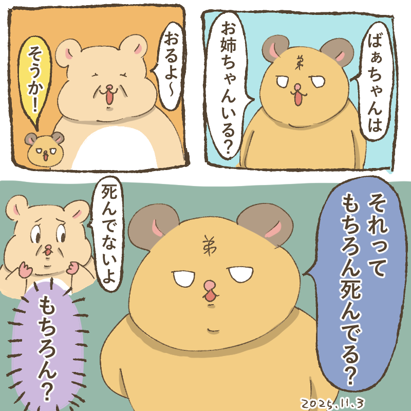 唐突な疑問 2025年11月03日 23:25 もちろん死んでる?って人生で一度も使わなそうなワードなんで死んでると思ったのか謎・・・ブログ村参加しております!ポチッとお願いします🙇にほんブログ村 「甥っ子」カテゴリの最新記事 タグ :#みぃちゃん#母 < 前の記事次の記事 > コメント コメント一覧 (2) 1. えむえふ 2025年11月06日 17:22 身近な最年長者がばあちゃんでそれより上は即死んじゃってる認定なんですかね 小さい頃は不謹慎な発言無意識にしちゃがちですが悪気がないので許されちゃいますね ところで最近は仮想通貨もまあまあ下がったりしてるのでおばあさんのぼやきあるのか気になりましたね 0 ハムタ がしました 2. ハムタ 2025年11月07日 22:35 >>1 ひぃばあちゃんにも会ってはいるんですが、どういう基準か謎です...笑 一応怒られてるけどほぼ毎日不謹慎発言連発してます(´∀`; ) そういえば仮想通貨が下がってるって騒いでた記憶が...笑 今聞いたら、積立て分は価格が上がってた時に売ったらしいです...! 0 ハムタ がしました コメントフォーム 名前 コメント 記事の評価 リセット リセット 顔 星 情報を記憶 コメントを投稿する